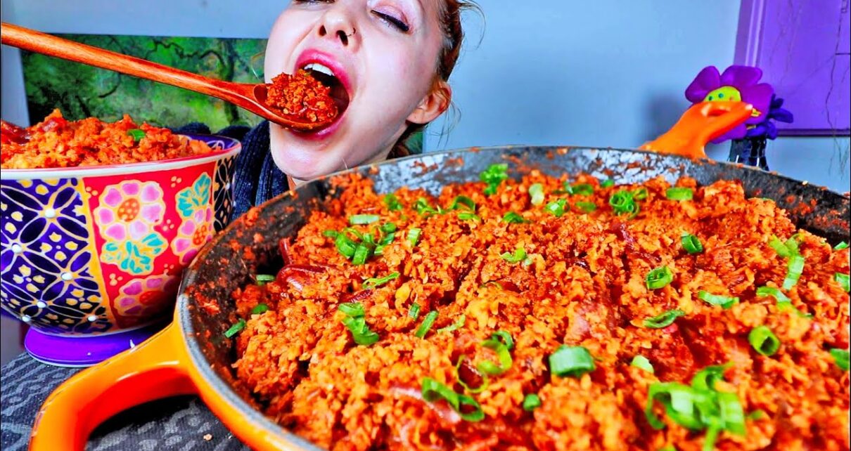 SPICY KOREAN BEEF 🔥🌶️ Recipe + Mukbang Asmr 🌶️🔥 Korean BBQ Beef 🌶️ Vegetarian Beef Bulgogi