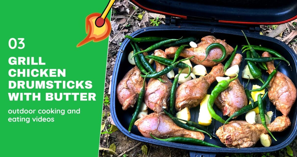 How To Cook Chicken Drumsticks In A Grill Pan With Butter – Outdoor Cooking And Eating Video