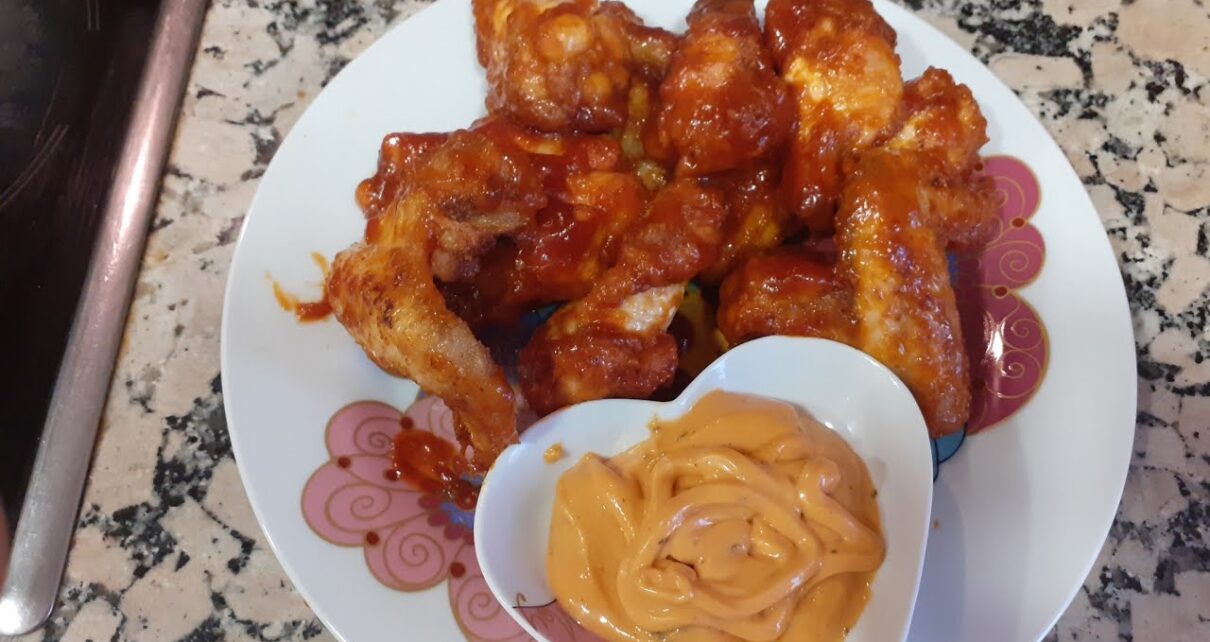 KFC style crispy chicken wings with B.B.Q sauce