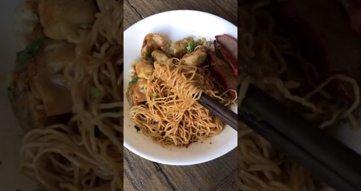Egg noodles with fried wontons and bbq pork